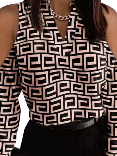 الأكمام الطويلة الطويلة غير الرسمية بلون تباين جوفاء ببلوزات وقمصان عنق القمصان