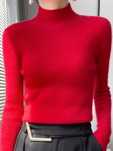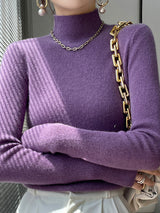 الأكمام الطويلة النحيفة الطويلة ذات اللون الصلب نصف قمم السترة السترة