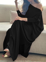 H-Line Loose Batroomed Coll Solid Maxi Dresses