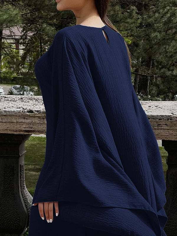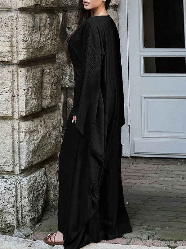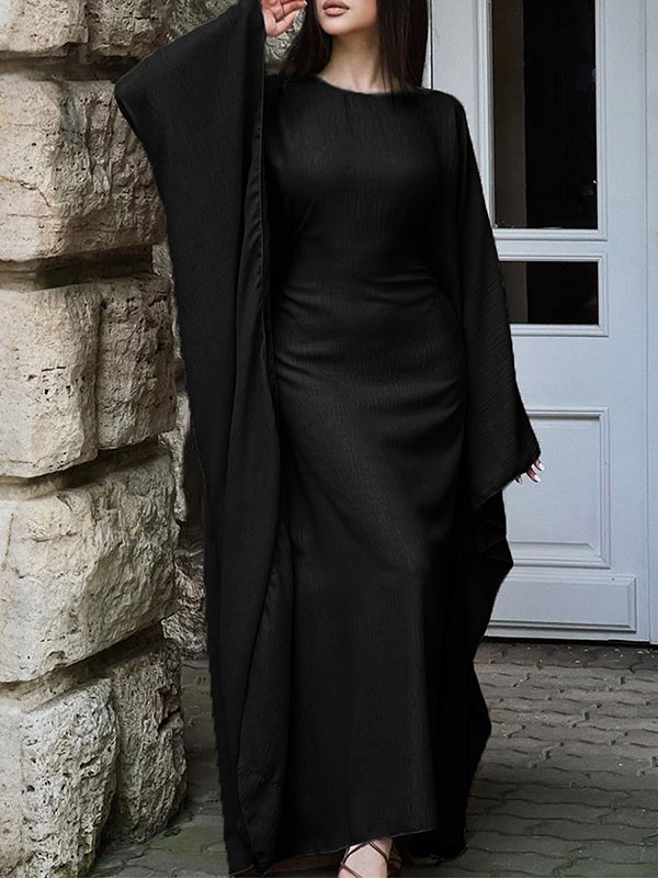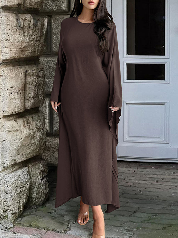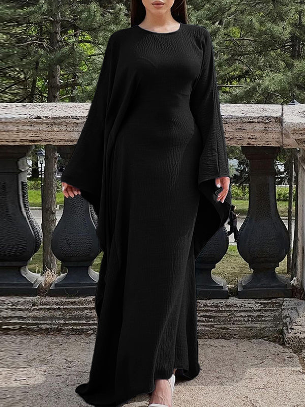 Batwing Sleeves Long Sleeves Solid Color Round-Neck Maxi Dresses