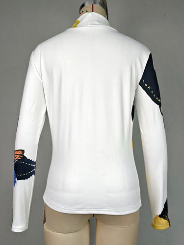الأكمام الطويلة زهرة نحيفة طباعة قمصان رقبة عالية