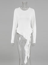 الأكمام الطويلة نحيفة مطوية من القمصان ذات العنق الدائري