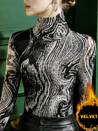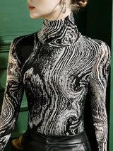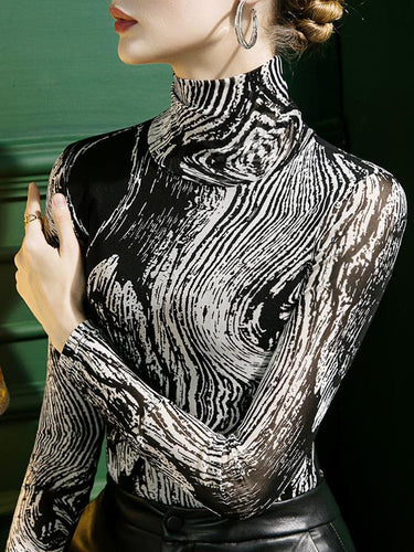 الأكمام الطويلة نحيفة طباعة القمصان عالية العنق