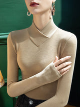 الأكمام الطويلة ذات اللون الصلب النحيف قمص القمصان ذات العنق