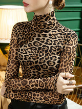 اختيار أنيقة الأكمام طويلة الأكمام النحيفة الفهد نصف القمصان تيرتلينك تي شيرت