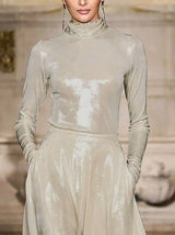 الأكمام الطويلة ألوان صلبة لامعة أعلى القمصان الرقبة