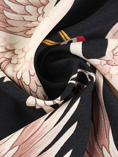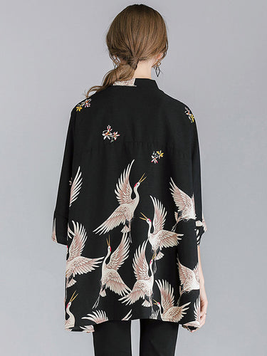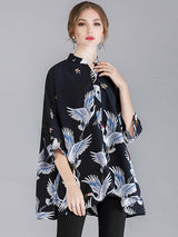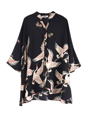 كرين المطبوعة الأصلي بزر الأزرار بلوزة نصف الأكمام