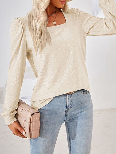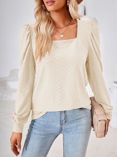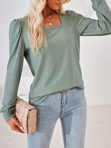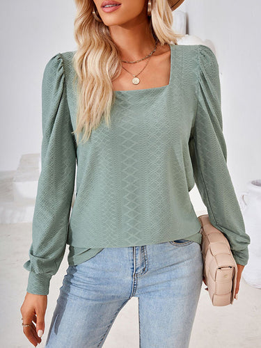 فضفاضة جاكار الصلبة القمصان مربعة رقبة القمصان