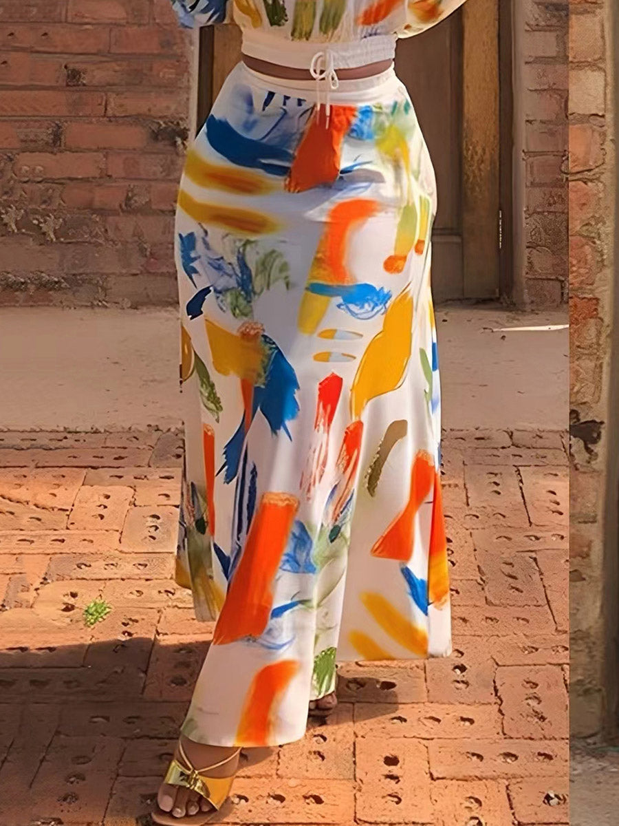 A-Line Elasticated Waist Contrast Color Graffiti Printed Split-Joint Skirts Bottoms
