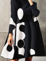 A-LINE Long Sleeves Polka-Dot-Plish-Coint Mock Dritic Mini Dresses