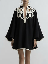 Flared Sleeves Loose Contrast Color Hollow Stand Collar Mini Dresses