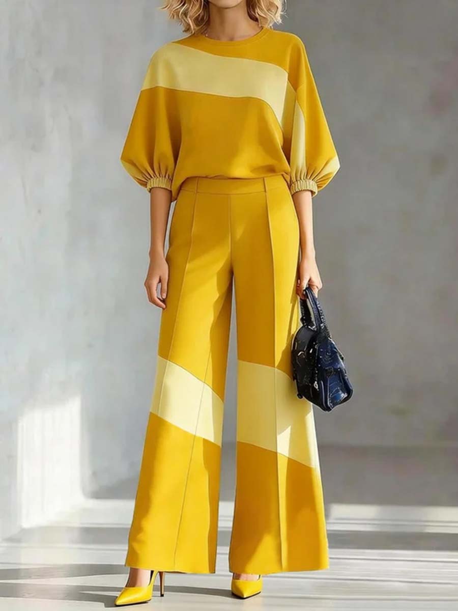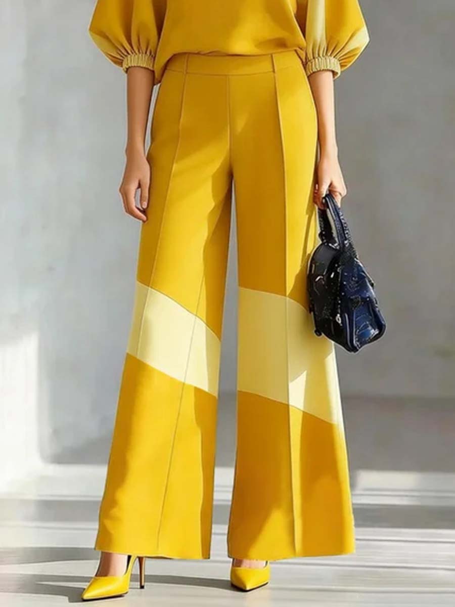 High Waisted Loose Contrast Color Pockets Split-Joint Suit Pants