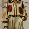 Long Sleeves Loose Buttoned Contrast Color Plaid Lapel Blouses&Shirts Tops