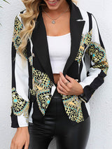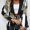 الأكمام الطويلة فضفاضة الجيوب المطبوعة بطولة السترة ذات الياقات الخارجي