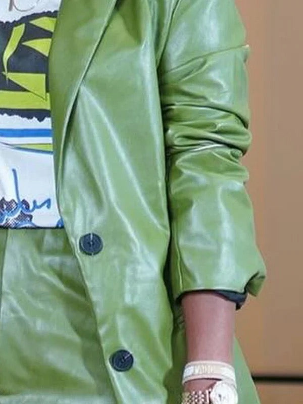 Long Sleeves Loose Buttoned Solid Color Notched Collar Outerwear