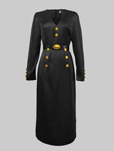 الأكمام الطويلة الأكمام نفخة الأزرار ذات اللون الصلب العميق V-teac midi فساتين