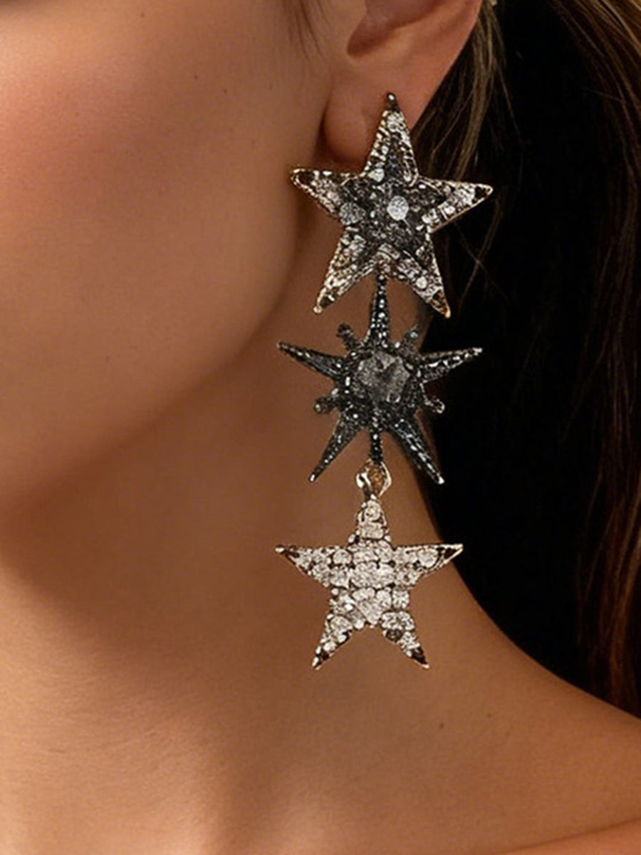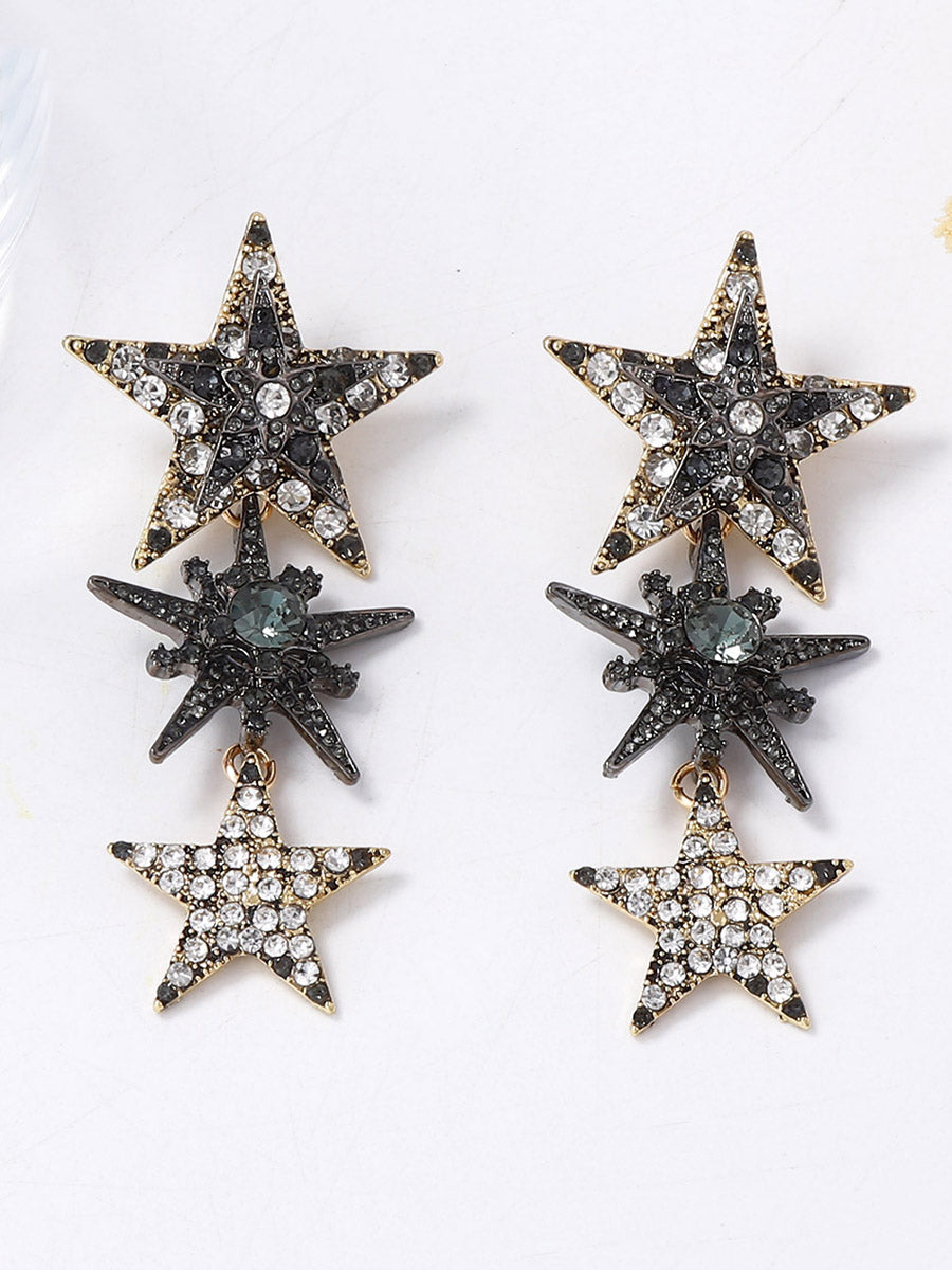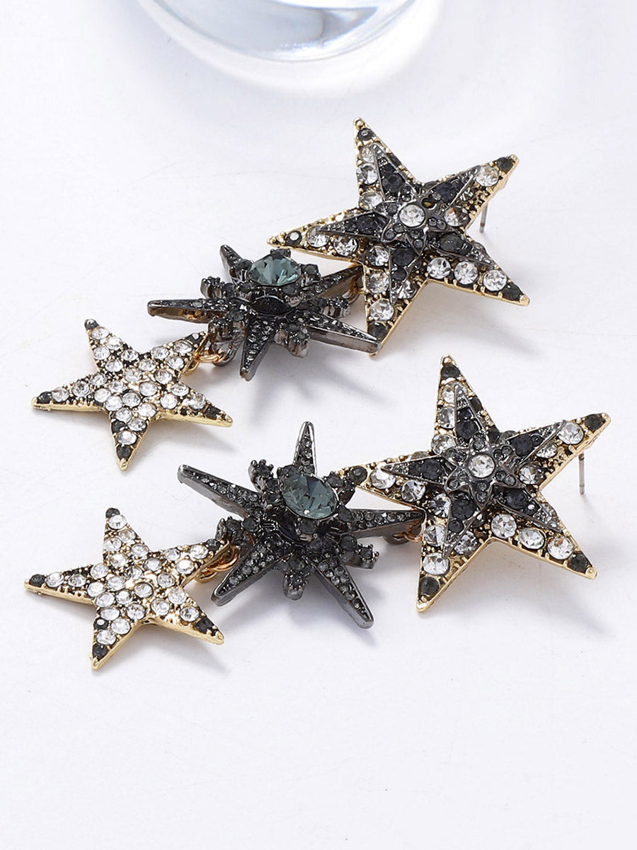 Rhine Stones Shiny Star Shape Earrings Accessories