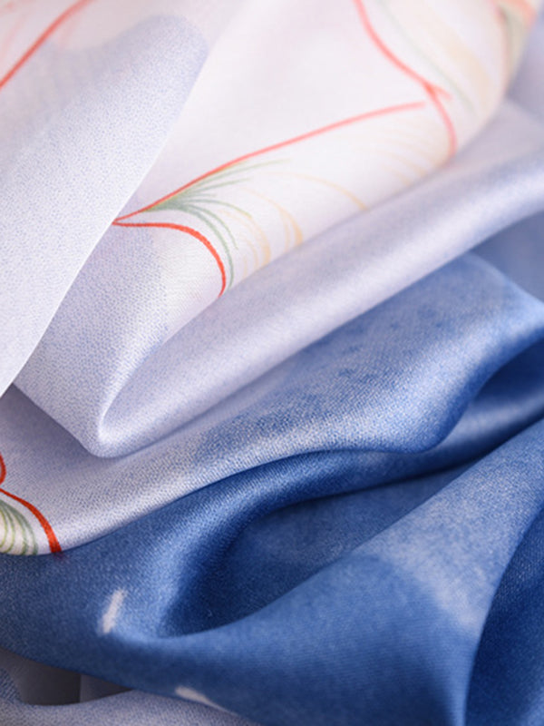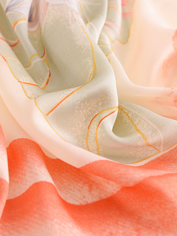 الأزهار القديمة المطبوعة حرير تقليد وشاح شال