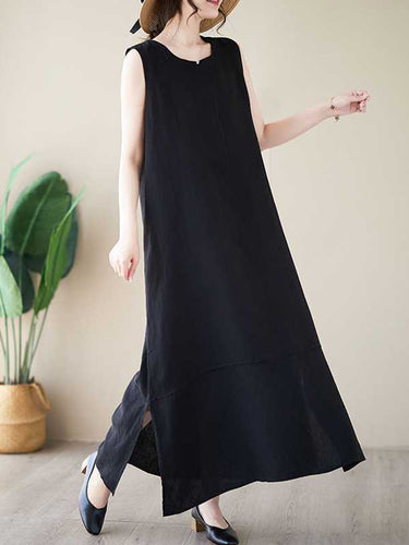 A-line lose massive farbige Midi-Kleider mit rundem Hals