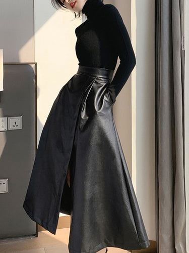 A-Line Lose Feste Farb-Split-Front-Röcke bodens