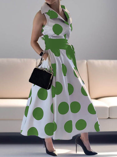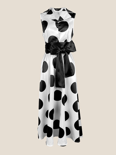 A-Line ärmelloses Polka-Punkt Split-Gelenk Tied Taille Maxi Kleider Hemdkleid
