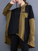 Künstlerischer Retro lose Split-Gelenk mit Taschenknopf Langarmärz