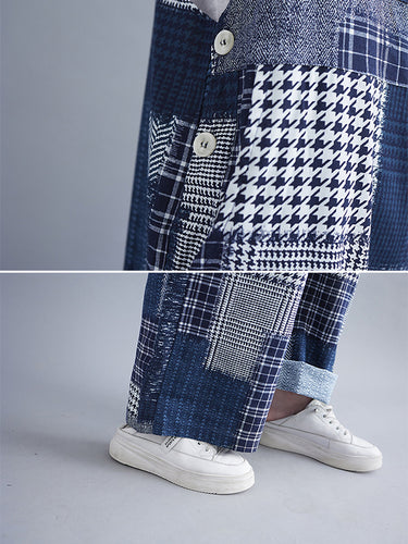 Künstlerische Retro Plaid Square-Hals-ärmellose Overalls