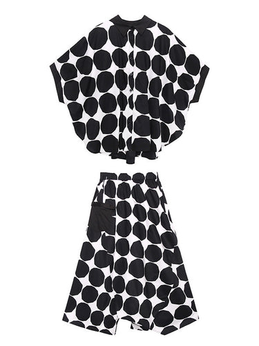Batwing-Ärmeln geknöpfte Tupfen mit Rundhals mit Rundhals Top + Elastizitätstaschen Harem Hosen Hosen unten zwei Teile Set Set Set