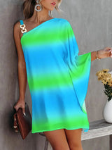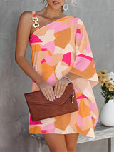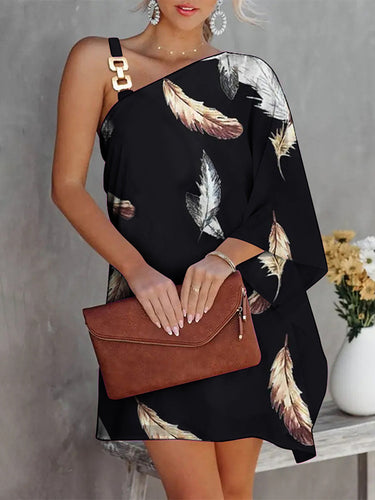 Batwing-Ärmel hohl gedruckte One-Shoulder-Mini-Kleider