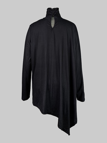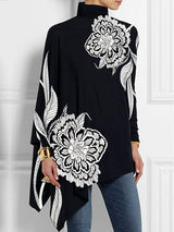 Batwing-Ärmel lose asymmetrische florale gedruckte Split-Gelenk-T-Shirts mit hohem Nacken