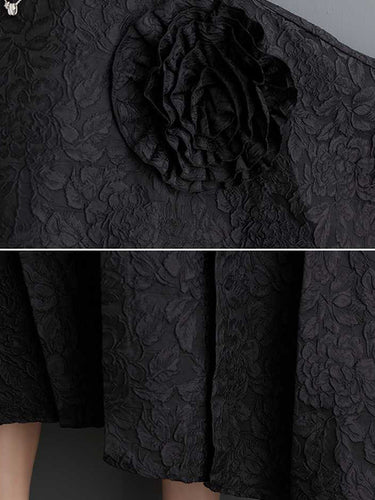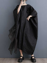 Batwing-Ärmel lose asymmetrische Blütenform Gaze Jacquard plissierte Feste Farbe Split-Gelenk mit rundem Hals Midi Kleider