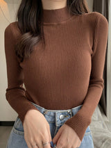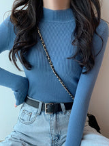 Lässige dünne lange Ärmel mit hoher Hals-Pullover-Tops mit langen Ärmeln