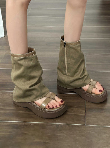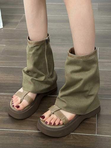 Hohlköpfe Split-Jaut Split-Toe Reißverschluss Stiefel Plattform Schuhe Sandalen Sandalen