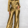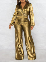 Bodycon hohe taillierte Elastizität glänzende Feste Farbe V-Neck-Overalls