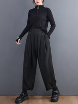 Lässige breite Bein lose Faltenfarbhosen