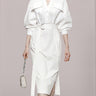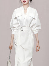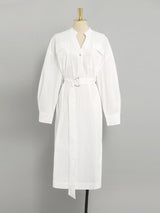 Lange Ärmeln lose durchsichtige Split-Gelee-Split-Seite gebundene Taille V-Ausschnitt Midi Kleiderhemdkleid
