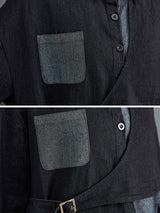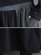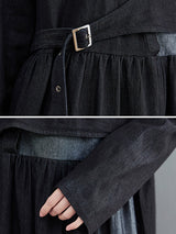 Originaler loser Denim Split-Gelenk gebundener Reverskragen Langarmes Midi Kleid