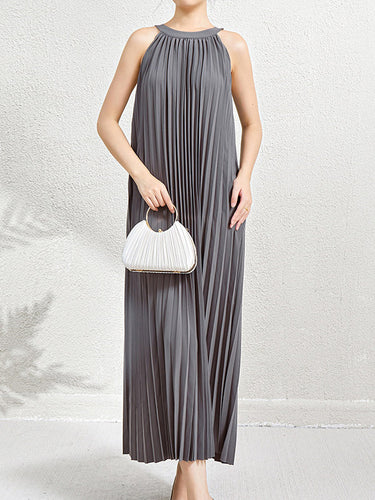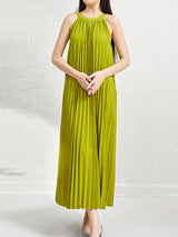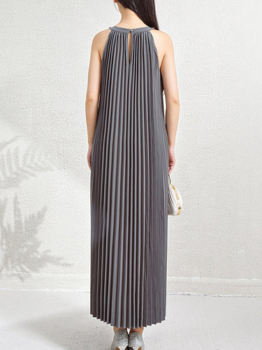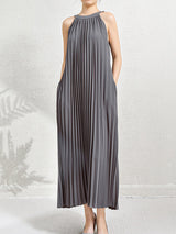 Lose ärmellose hohle Falten Taschen Feste Farbhalter-Maxikleider