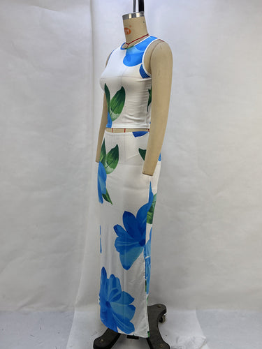 Ärmellose Blumendruck rund-hals-Weste Top + Bodycon-Röcke untere zwei Teile Set Set