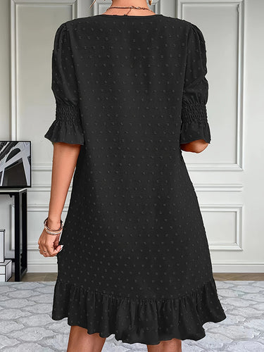 A-Line Flared Sleeves Elasticity Jacquard Plissee Feste Farbe Split-Gelenk V-Ausschnitt Mini-Kleider