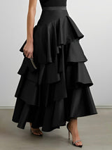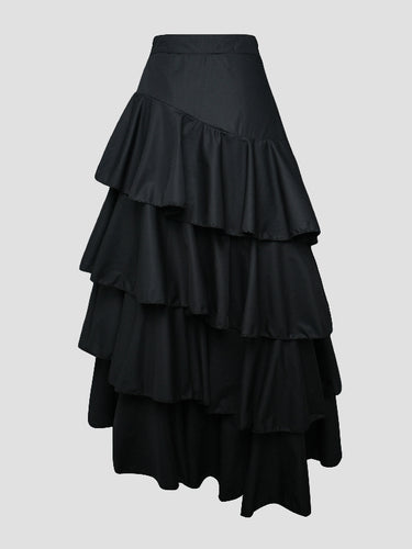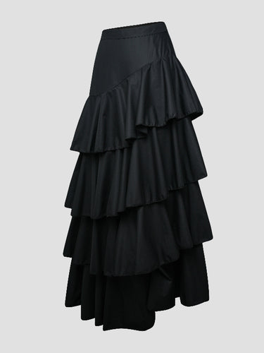 A-Line hohe taillierte Falbala Feste Farbe Lange Röcke Röcke Bottoms