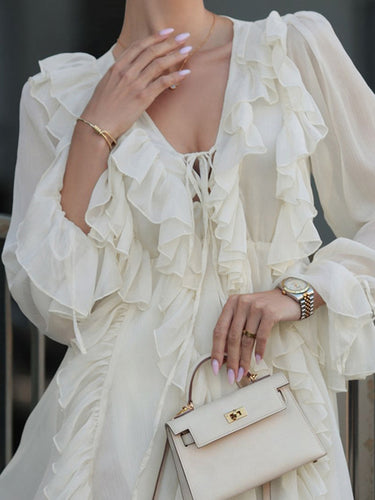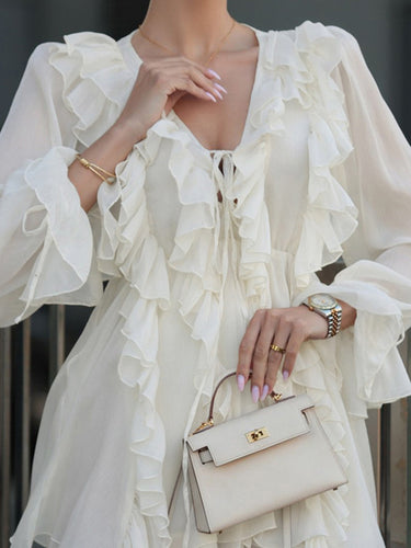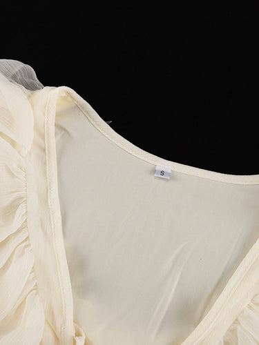 A-Line hohe taillierte Rüschenverkleidung Feste Farbgebundene V-Ausschnitt Mini-Kleider
