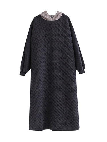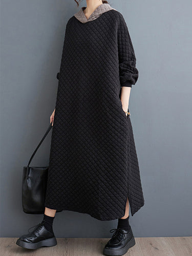 A-Line Langarmes mit Kapuze mit gesteppten Midi-Kleidern mit Kapuze