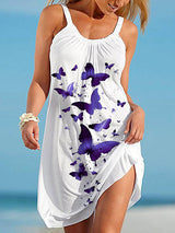 A-Line Lose Butterfly Print Falten Spaghetti-Hals Mini-Kleider