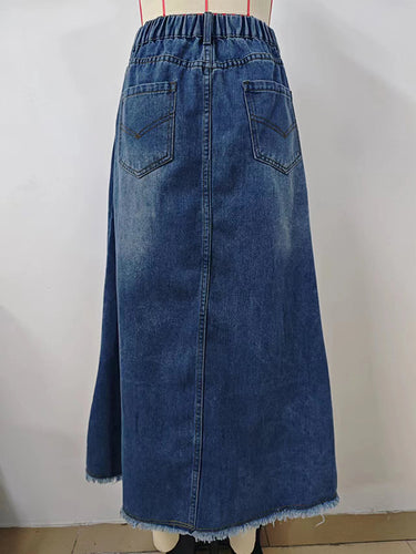 A-Line Lose Knopfelastizitätsstaschen Split-Gelenkrocksboden