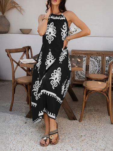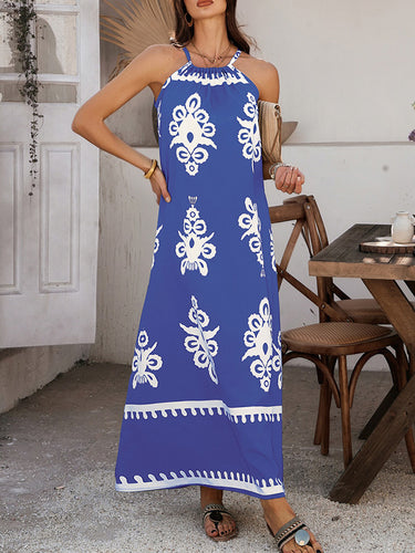 A-line lose Kontrastfarbe Halfter-Heck-Halter-Maxikleider