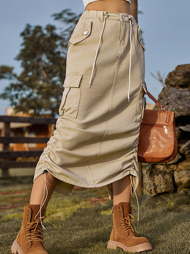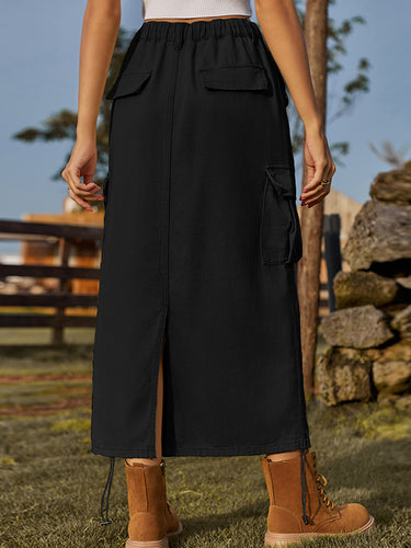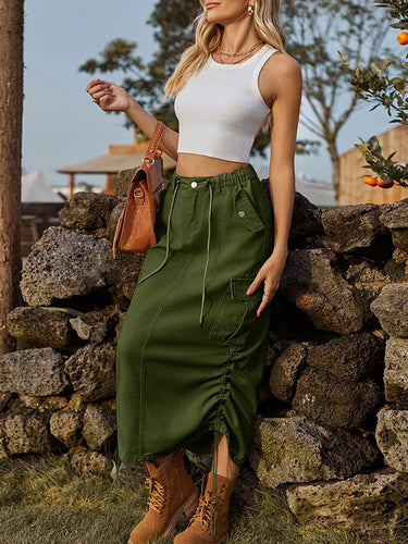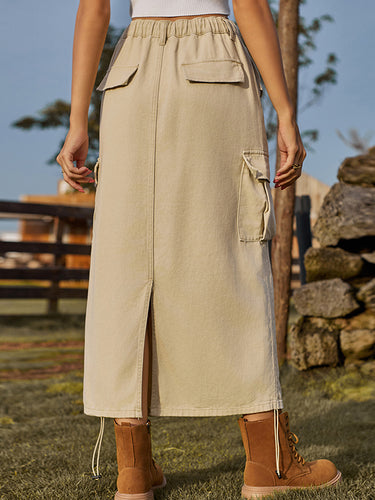 A-Linie losen Kordelelastizitätstaschen Einfacher Farb-Split-zurück-Röcke
