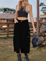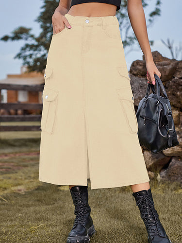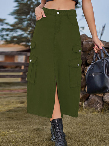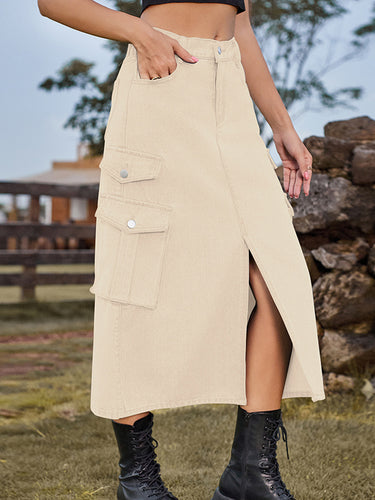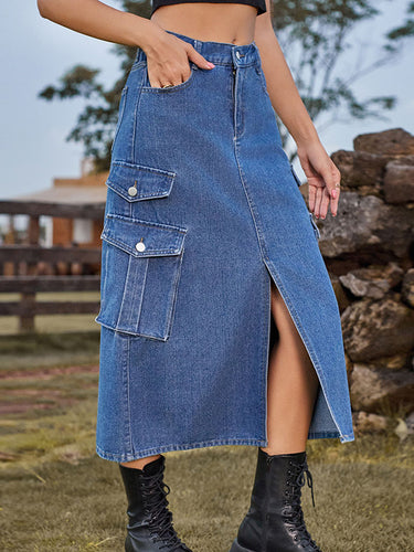A-Line Lose Taschen Split-Front Split-Gelenk-Denim-Röcke
