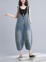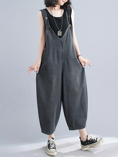 Krümmte lose Denim -Overalls geschnittene Overalls