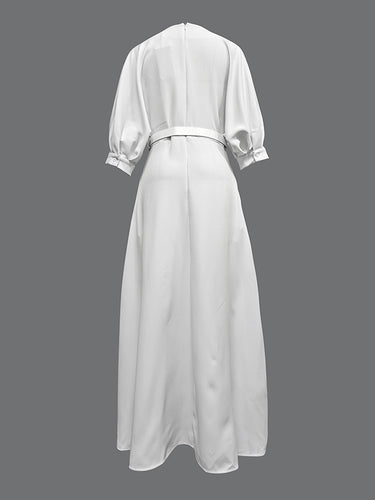 Halbe Ärmel lose Gürtelfarbene Farbe Tiefes V-Ausschnitt Maxikleider